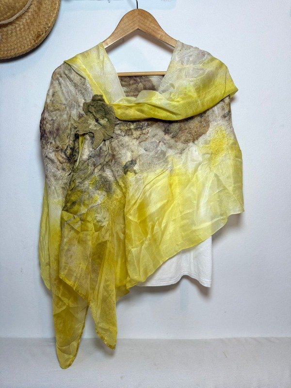 Pashmina Chal ECOPRINT Seda Natural y Fieltro CÚRCUMA